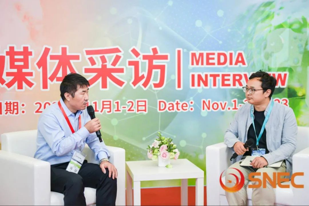▲开云官方新能源技术总监赵展展先生接受SNEC媒体采访